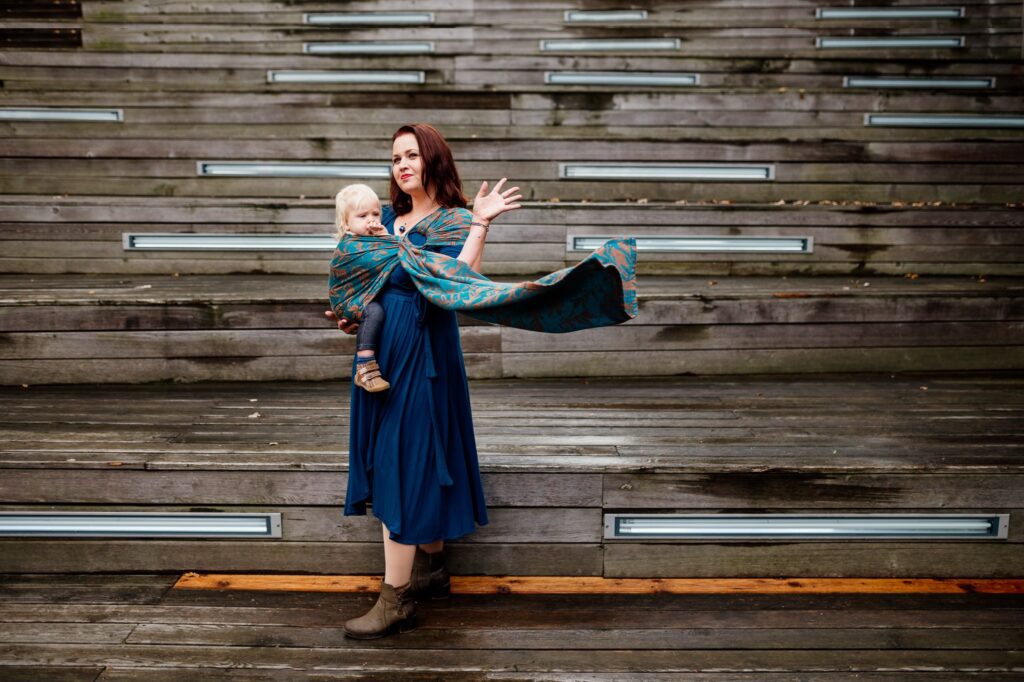 Aš pati visų nėštumų metu naudojau austą vaikjuostę. Rišdavausi vaikus ant nugaros ir pasirinkdavau tokius rišimo būdus, kad nieks neitų per pilvą (nuotrauka aukščiau). Nors tikrai žinau, kad kai kurios mamos dar naudoja įprastas nešiokles pirmus nėštumo mėnesius, bet man jau nuo pat pirmų dienų yra tiesiog diskomfortas kažką jausti ant pilvo. Rišimo būdų yra tikrai ne vienas, kuriuos patogiai galėsite naudoti viso nėštumo metu. Bet aš esu ganėtinai patyrusi vaikjuostininkė, tai man nebuvo problemos per porą minučių susipakuoti sau vaikus ant nugaros. Ką daryti, jei iki tol naudojote tik nešiokles ir bijote, kad nėštumo laikotarpis nėra pats tinkamiausias mokintis naujų dalykų?