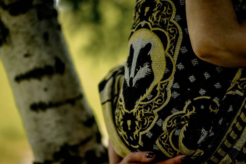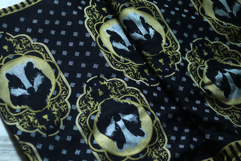 Ir taip! Ši juosta įkvėpta Hario Poterio Švilpynės koledžo! Matote čia šio koledžo spalvas ir jo simbolį- barsuką. Manau šis raštas taip pat labai patiks ir vaikams. Juosta jau yra iš storesnių, tai visai naujagimiams netiks, rekomenduočiau ją nuo 6 mėnesių iki pat nešiojimo dienų pabaigos.