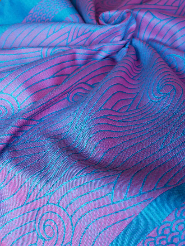 Hipnotizuojančios ir spalvą keičiančios šio audinio spalvos sukurtos naudojant unikalią audimo techniką. Juosta sukurta iš Havajų mėlynos spalvos Mercerised Egipto Mako medvilnės ir pakaitomis iš purpurinės tencelio ir tamsiai arbatinės Mako medvilnės. Šie siūlai sukuria nepaprastai gražų efektą. Banguojančios bangos šoka per audinį, o spalva nuolat keičiasi, tam tikrose šviesose įgaudama violetinę spalvą su šviesesnės arbatinės spalvos kibirkštėlėmis.