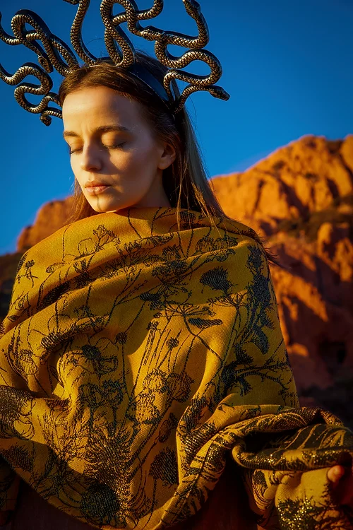 Magiškas šiltos ochros spalvos raštas su žvilgančiu žiupsneliu aukso vaizduoja pievą su erškėčiais. Tai stulbinantis ir elegantiškas augalų motyvas su švelniomis aguonomis ir laukinėmis arbatžolėmis.