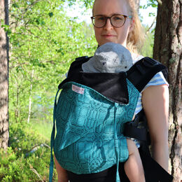 „Wompat“ kūdikio nešioklė yra ergonomiška ir patogi jums ir mažyliui. Elegantiška, ypatingo dizaino ir paprasta naudoti! Nugarėlė ir gaubtas pagaminti iš aukštos kokybės „Vanamo“ austos juostos. Pečių juostos ir juosmens diržas – iš tvirtos minkštos juodos medvilnės.